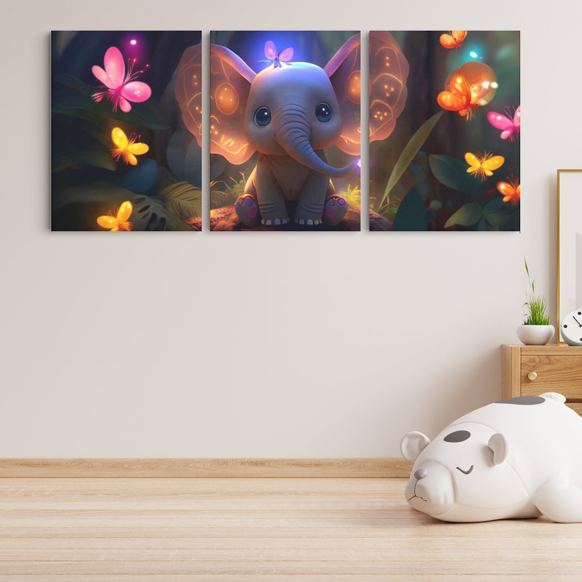 Luminous Harmony: A Wall Art Featuring an AI Elephant Amidst Glowing Butterflies - Celebrate the Fusion of Artificial Intelligence and Natural Splendor - S05E65