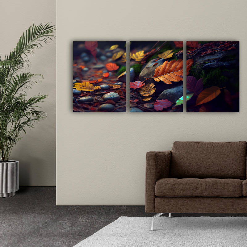 Immerse yourself in the soothing beauty of nature with our exquisite wall art fabric printed collection, "Naturally Serene: Pebbles and Leaves." This captivating artwork celebrates the organic allure of pebbles and leaves, creating a tranquil and harmonious atmosphere in any space.