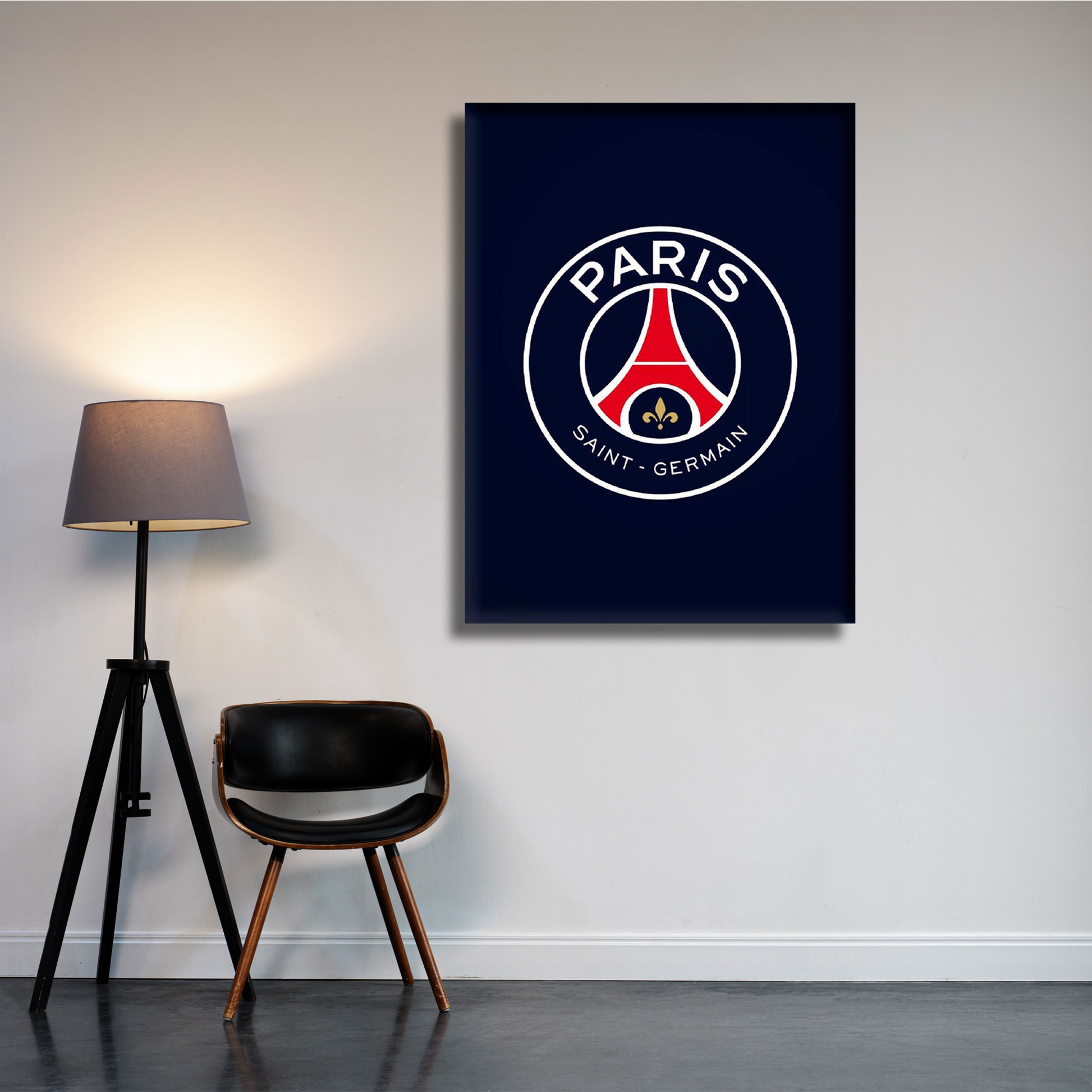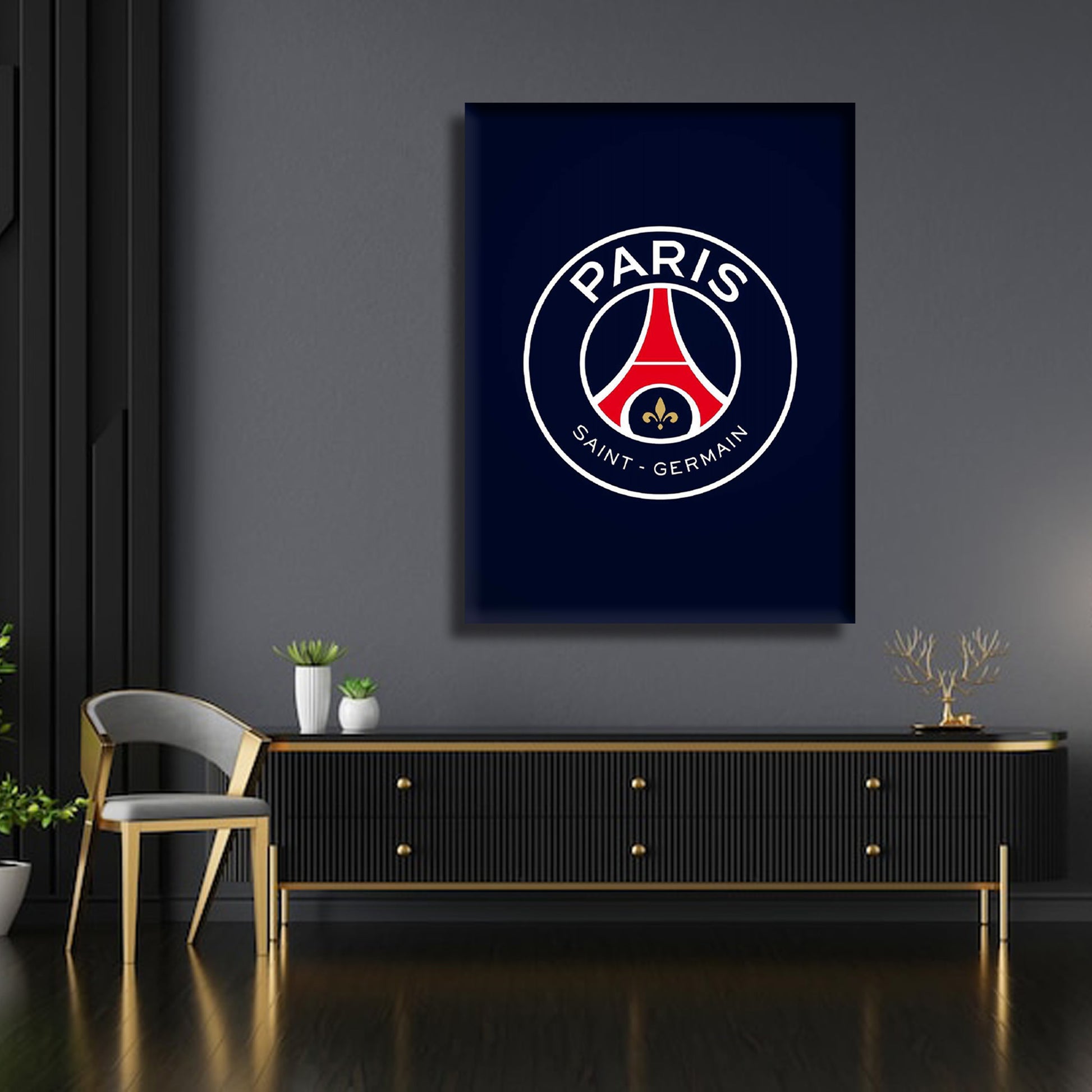 This wall art masterpiece takes you on a journey through the heart of Parisian football excellence. The emblem at its core, the iconic Paris Saint-Germain insignia, stands as a symbol of both tradition and innovation, much like the city of Paris itself.