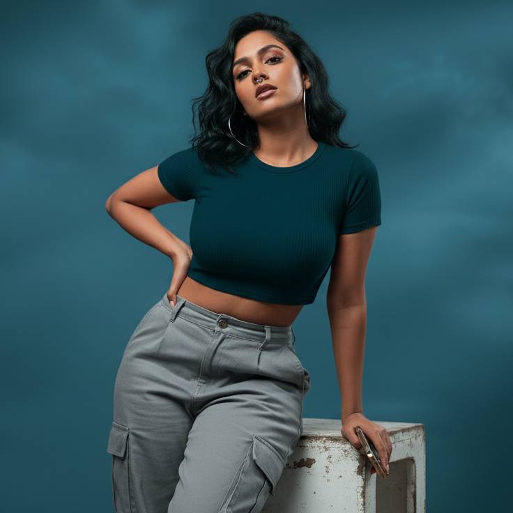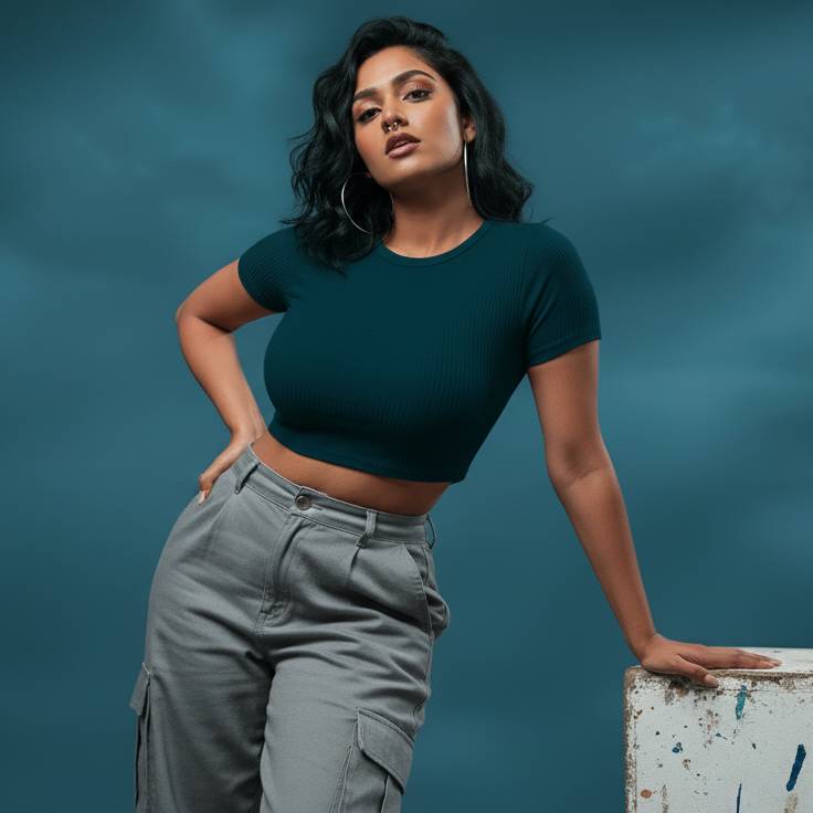 Fit: Cropped silhouette with clean rib lines for a flattering structure.