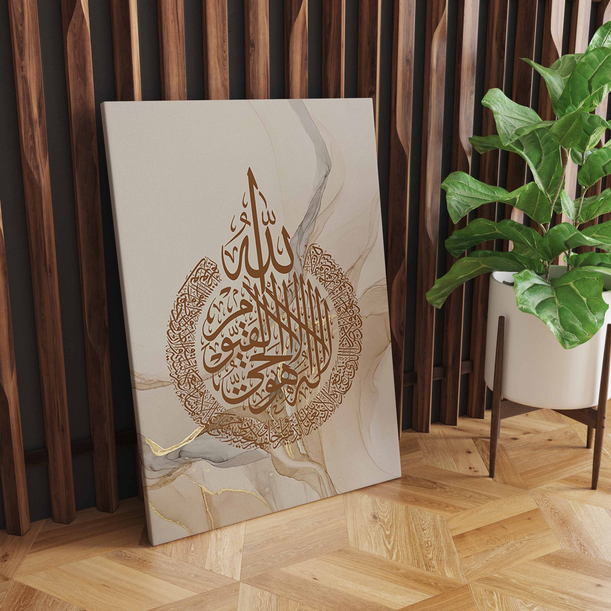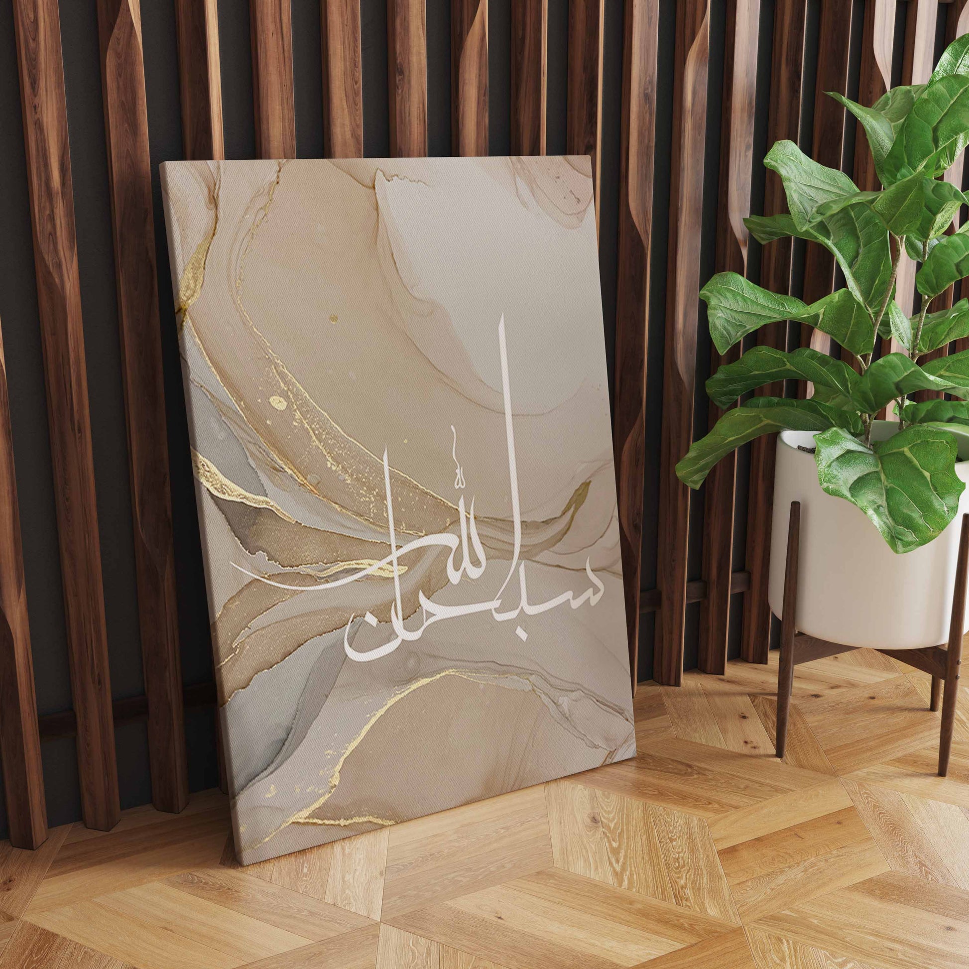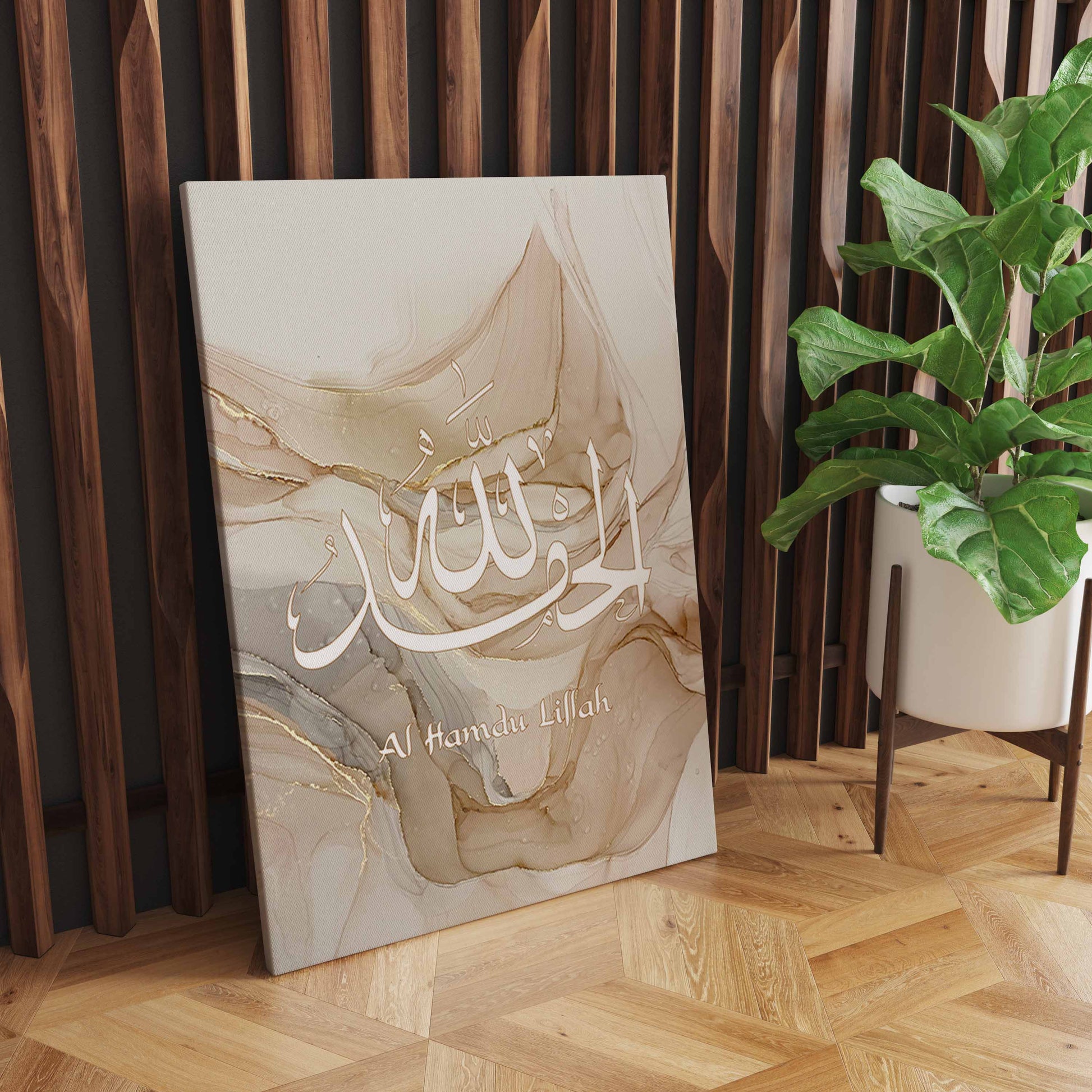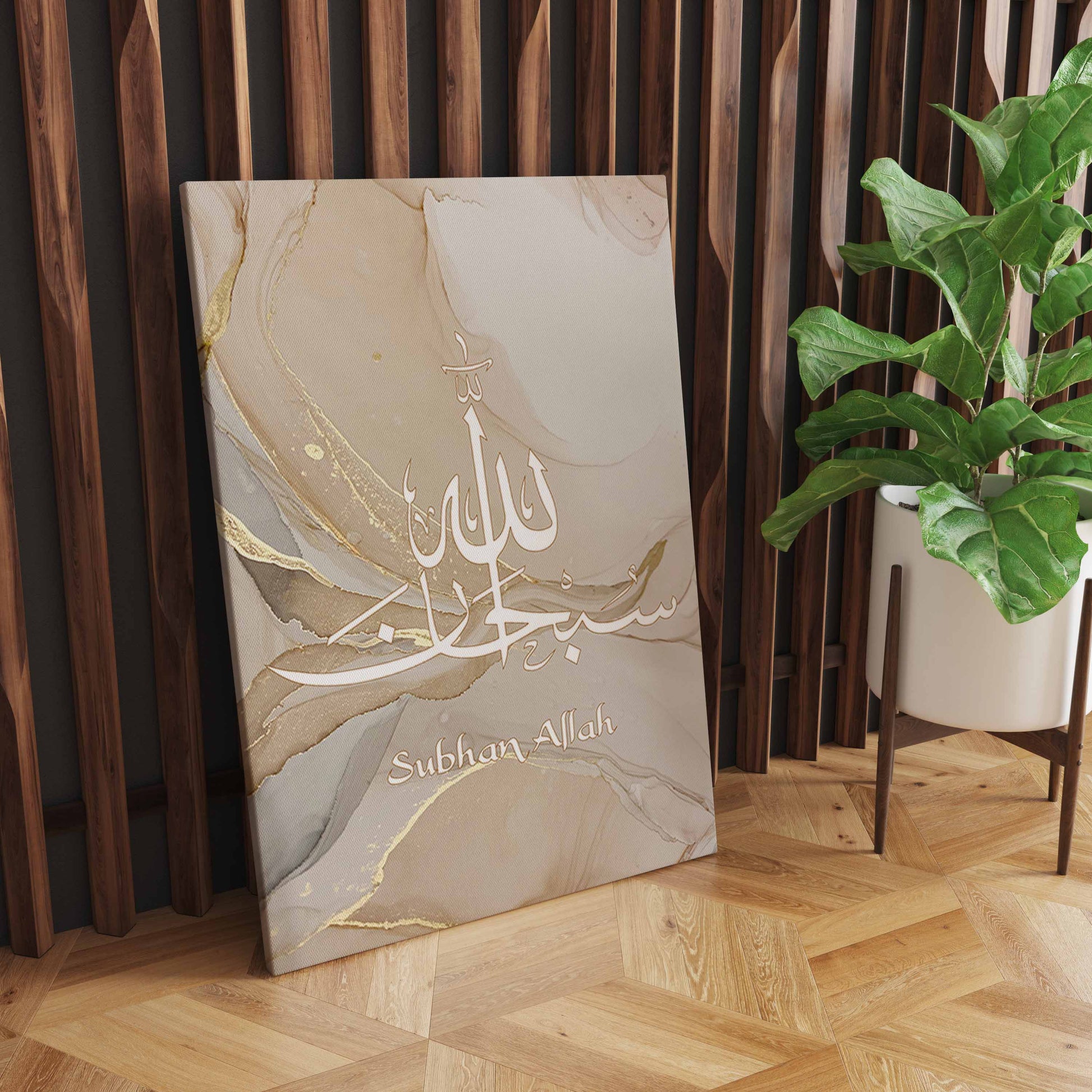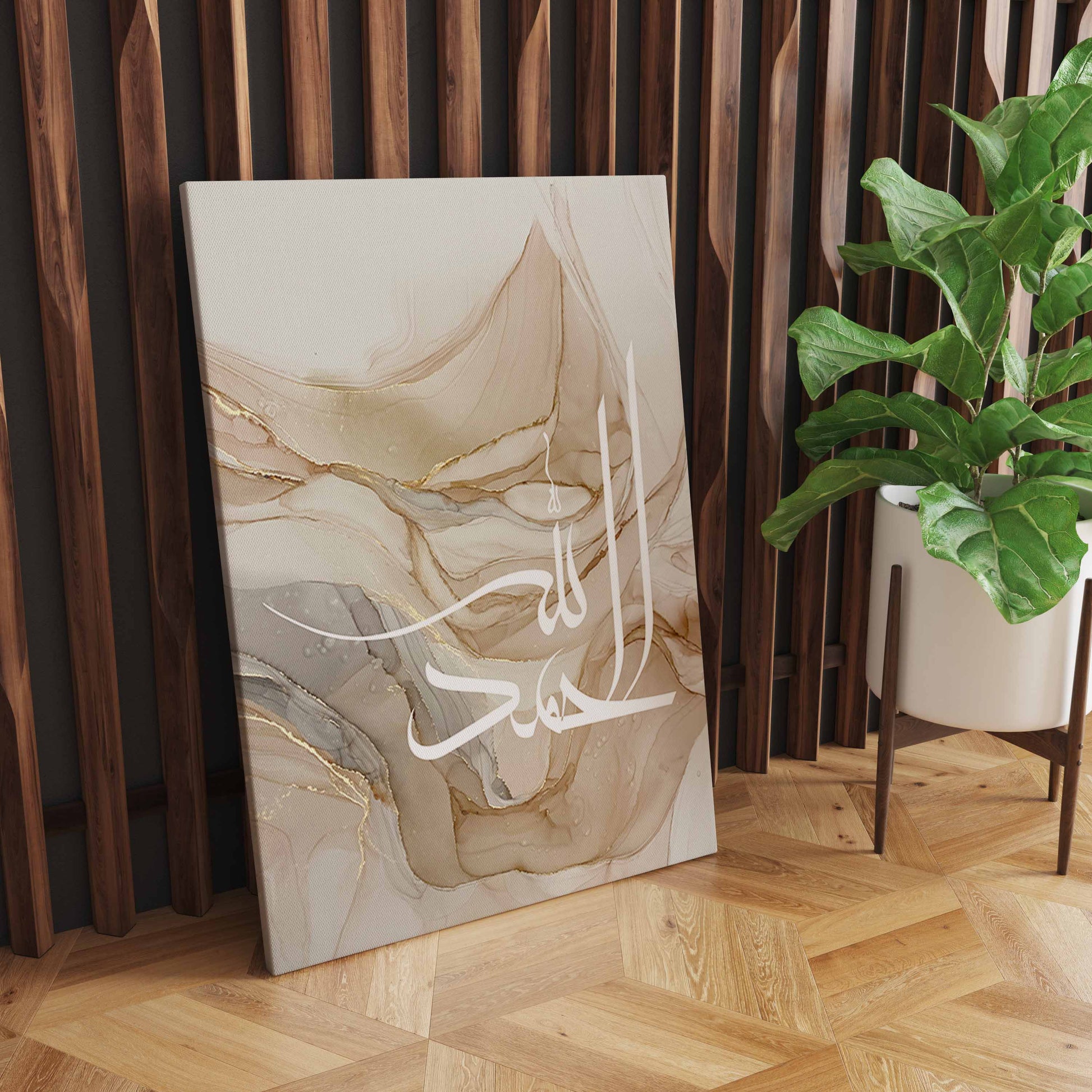 Transform your living room into a sanctuary of beauty and serenity with our Islamic Calligraphy Allahu Akbar Beige Gold Marble Fluid Abstract Fabric Printed Wall Art. Immerse yourself in the elegance of Islamic art and elevate your home decor to new heights. Order now and enjoy the harmonious blend of contemporary design and timeless spirituality