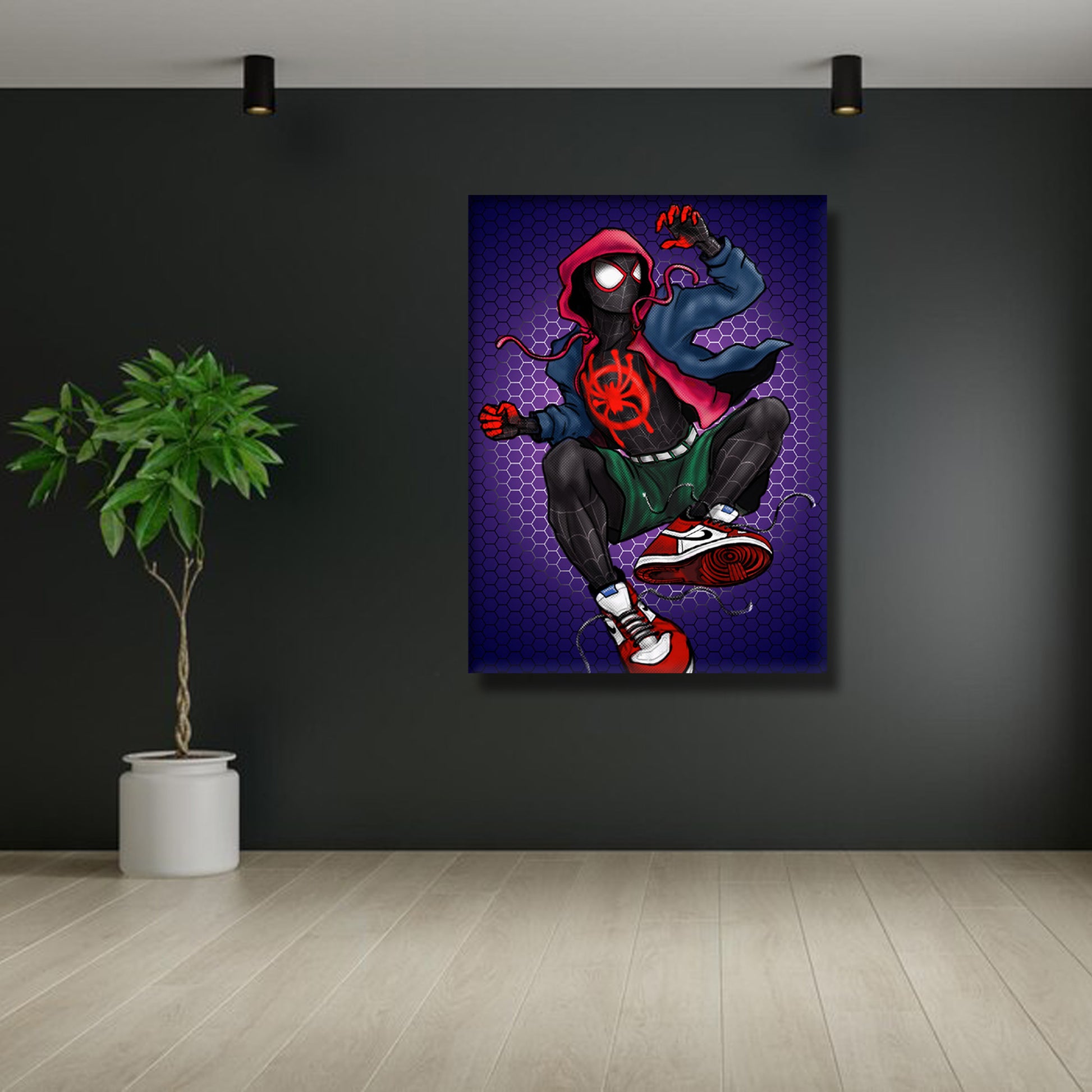 Miles Morales is not just a superhero; he's a symbol of courage and diversity in the Spider-Verse. His story reminds us that we all have the power to transcend our limits and embrace our true potential. With this artwork adorning your wall, you'll be inspired daily by his unwavering determination and the boundless possibilities that await when you embrace your true self.